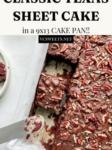 This classic Texas sheet cake recipe features a moist chocolate cake made with buttermilk, cinnamon, natural cocoa powder and baked in a 9 x 13 sheet cake pan. Topped with an addictively rich fudge frosting and toasted pecans, you'll see why Southerners call this the best chocolate cake in the South!!